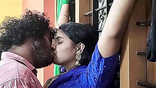 Kerala half saree BDSM hand on window and hot romance with pussy and ass lick romance, Mallu hot sex by Vaishnavy and Sharun Raj