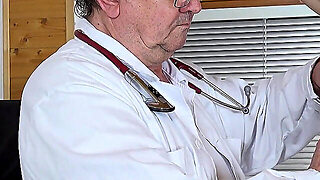 Mature gyno exam - good looking granny made to cum by her gyno doctor with a fucking machine
