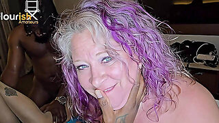 Interracial GILF gangbang gets wet and messy