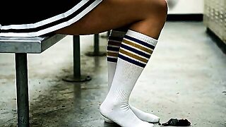 Giantess Cheerleader crushes shrunken teacher under her socks
