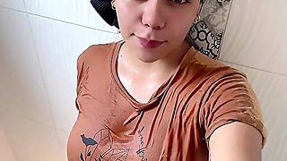 Japanese mom taped in the bathroom and soaked in sperm