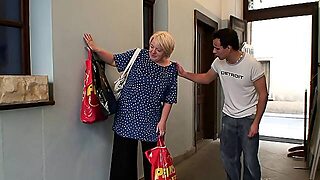 Big-boobs blonde granny rides his cock. Big-boobs blonde granny rides his cock