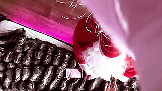 Cute mature lesbian couple in nylon stockings smashing each other with toys