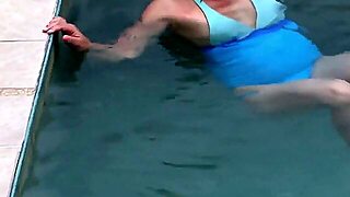 Hairy MILF's wet pussy squirts and wets her dress and bra