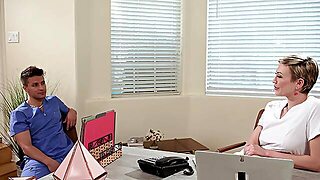 Skinny blonde Adira Allure gets her tight ass spanked and oiled by a horny couple