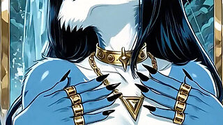 122. Blue Furry Demon Dance and Sexy Pose at Waterfall (Ai Animation)